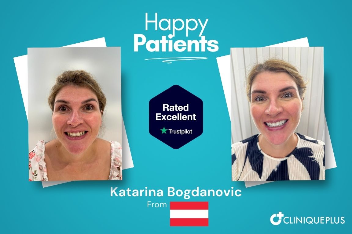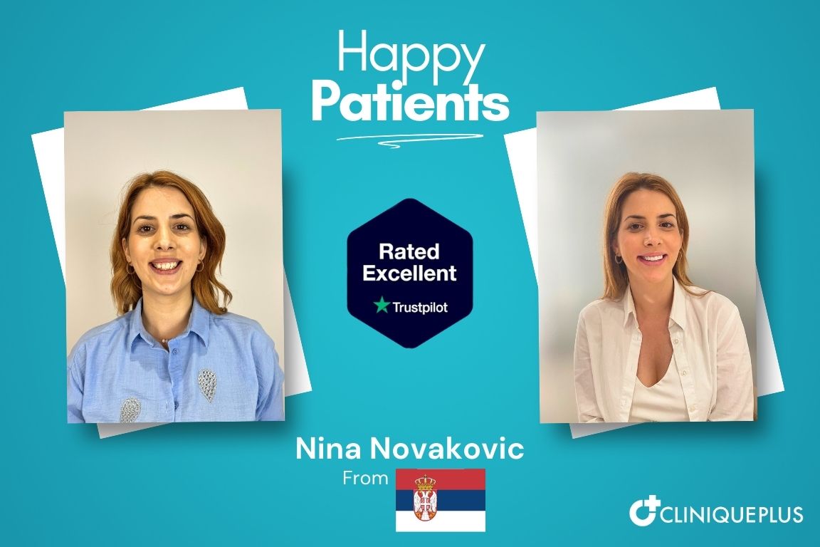 Hollywood Smile Turkey before after Nina Novakovic from Serbia at CLINIQUEPLUS showing natural smile transformation with porcelain veneers