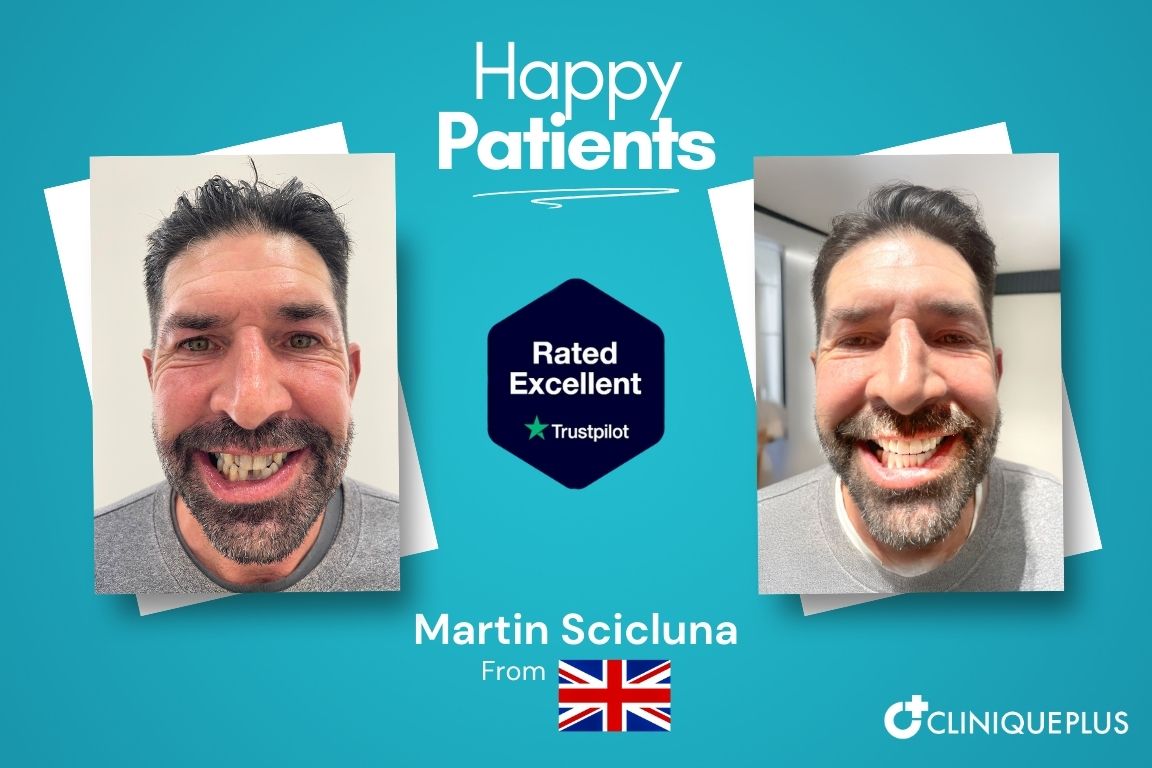 Hollywood Smile Turkey before after Martin Scicluna from UK United Kingdom at CLINIQUEPLUS Istanbul dental implants and veneers transformation