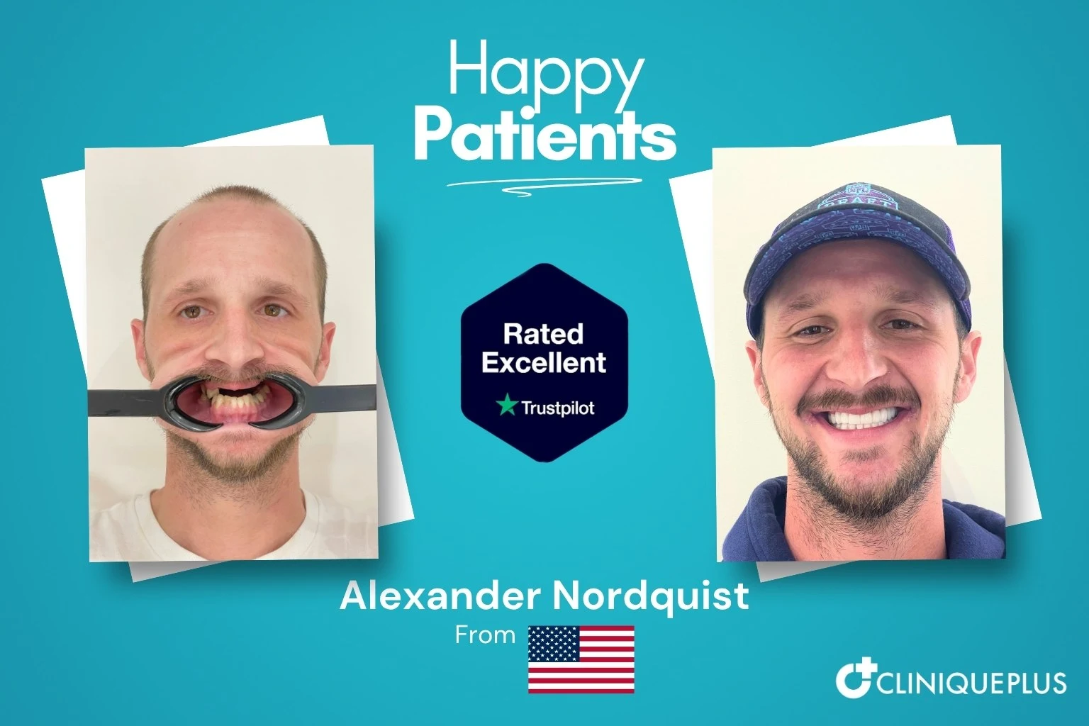 lexander Nordquist’s stunning smile transformation with CLINIQUEPLUS in Turkey.