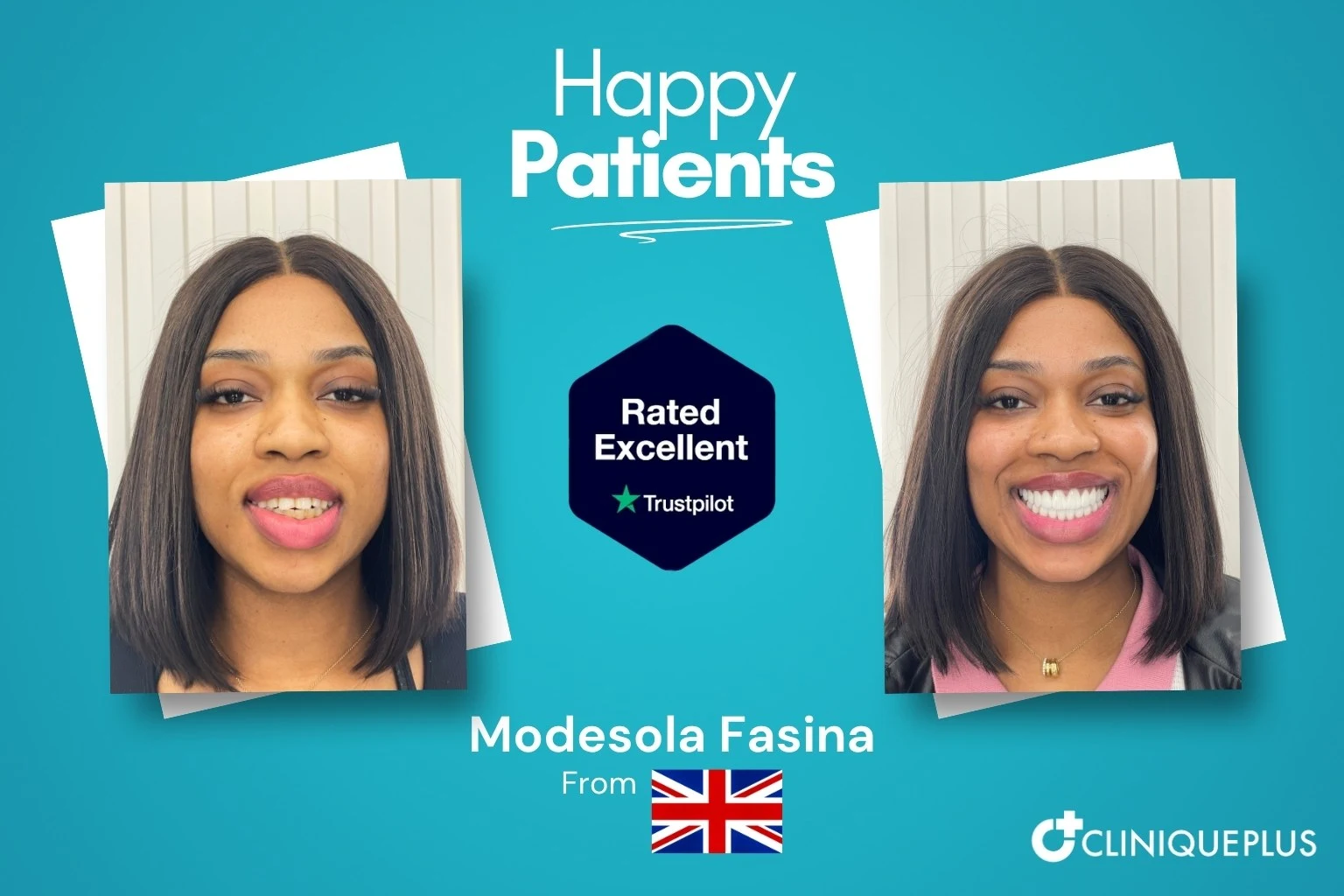 Modesola Fasina achieved a perfect smile makeover in Turkey with CLINIQUEPLUS.