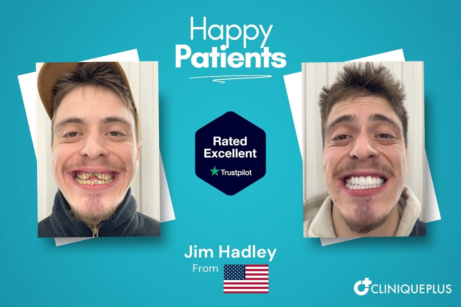 Jim Hadley’s smile makeover journey at CLINIQUEPLUS, Turkey.