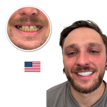 Our premium Hollywood Smile package with Swiss Straumann veneers starts at $4,399, compared to USA price of $20,000. You save $15,600 while getting the same premium quality materials and treatment.